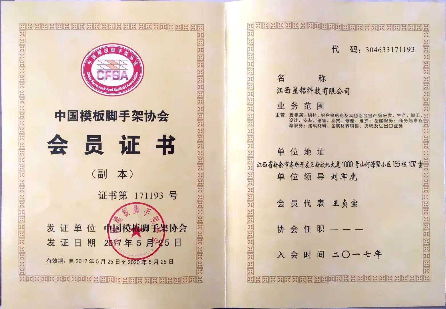 中國(guó)模板腳手架協(xié)會(huì)會(huì)員證書