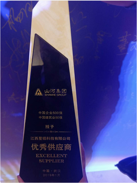 星鋁科技榮獲山河建設集團(江西)有限公司“2018年度優(yōu)秀供應商獎”。