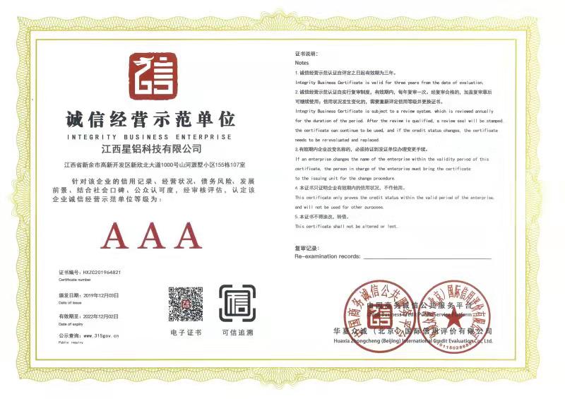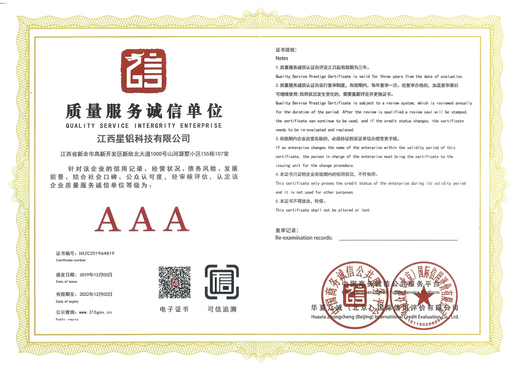 2019年全國鋁模板行業(yè)誠實(shí)守信企業(yè)